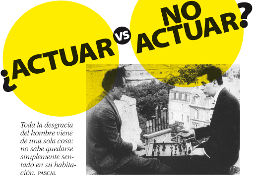 Generalmente, tanto el individuo como las colectividades están sedientos de acción. De forma que esperan que los jefes de las empresas, los alcaldes, los directivos de organizaciones, los entrenadores deportivos, los políticos en general, tomen decisiones sin pausa y actúen de forma contundente para conseguir mejorar resultados en los campos que les corresponden. Nada hay más decepcionante que una junta, una reunión cumbre que finalice sin un concreto programa de acciones precisas con el propósito de cambiar la realidad. Parecería que la realidad solo existe para ser cambiada.
