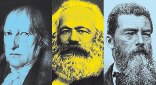 De izquierda a derecha, Hegel, Marx y Feuerbach.